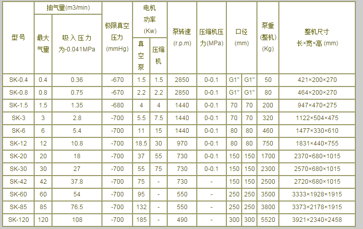 Sk系列水環式真空泵及壓縮機是用來抽吸或壓縮空氣和其它無腐蝕性、不溶于水、不含有固體顆粒的氣體,以便在密閉容器中形成真空和壓力。但吸入氣體允許混有少量液體。